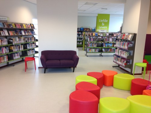 Als ik binnenkom, word ik vriendelijk begroet door een bibliotheekmedewerker die ik herken van vroeger. Verder is meteen duidelijk dat de bieb flink is gekrompen. De heldere kleuren zorgen voor een frisse uitstraling, dat hebben ze mooi gedaan!