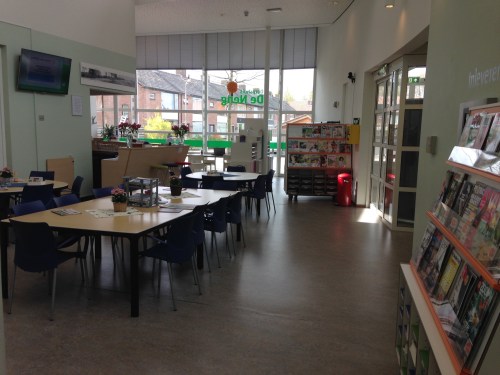 De tijdschriften staan bij de bar, een mooie integratie met het dorpshuis.
