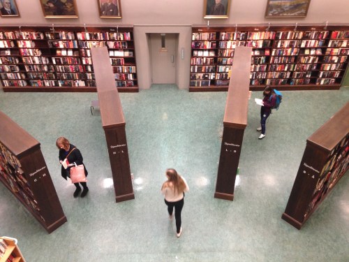 Vorige week kwamen wij terug van een mooie, zonnige vakantie in Noorwegen. In Oslo heb ik de bibliotheek gemist, want ik had geen zin er speciaal voor om te reizen. De tweede plaats waar we verbleven was zo klein dat er niets was behalve een station en een supermarkt (en een heleboel mooie natuur). Maar in Bergen, aan de westkust van Noorwegen, is alles op loopafstand en er is een mooie bibliotheek. Bergen heeft de meeste neerslag van alle steden op aarde, dus er wordt vast ook veel gelezen.