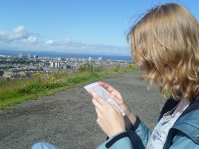 Verder lees ik ook nog steeds veel boeken op papier. Dan geldt: hoe lichter en kleiner, hoe beter. Heel fijn zijn dwarsliggers, zoals ik op de foto hierboven lees. Verder vind ik boeken met een harde kaft fijner dan paperbacks, omdat je die vaak helemaal om moet buigen om ze niet te laten dichtvallen (ja, ik knak ruggen). Het is dus heel fijn dat de bibliotheek vrijwel alle boeken een harde kaft geeft. Laatst heeft Emmy (zon en maan) laten zien hoe ze dat doen; erg tof om zo een kijkje achter de schermen te krijgen.