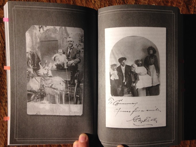 Het eerste boek kent een langere aanloop dan de film. Langzaam wordt duidelijk dat Jacobs opa zijn sterke verhalen niet heeft verzonnen, maar dat hij écht in aanraking was gekomen met een stel weeskinderen met bijzondere gaven: de één is heel sterk, de ander heeft bijen in zijn maag, de volgende zweeft als ze haar loodzware schoenen niet draagt en ook Jacob zelf blijkt een bijzondere eigenschap te hebben. Het eerste boek eindigt met een gevecht tussen deze kinderen en een stel monsters, waarbij hun juf Miss Peregrine wordt gekidnapt, terwijl ze net in een vogel is veranderd.