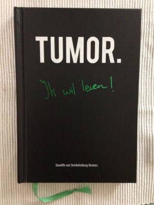 Het eerste wat opvalt aan het boekje Tumor. Ik wil leven! is dat het er zo mooi uitziet: chic zwart met een groen leeslint, een fijn lettertype en mooie foto’s. Het maakt me nieuwsgierig en ik begin te lezen. Voor ik het weet ben ik over de helft… dat leeslint heb ik dus amper nodig!