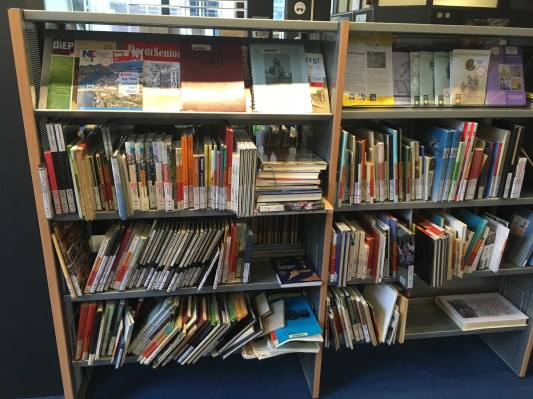 Uiteraard is er een collectie met boeken over Dordrecht, maar deze kast is wel een zootje geworden.