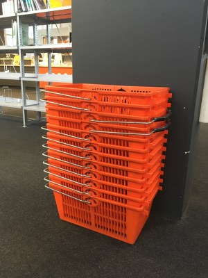 Bij de ingang kan je een mandje pakken, om alle boeken in te laden die je wilt lenen.