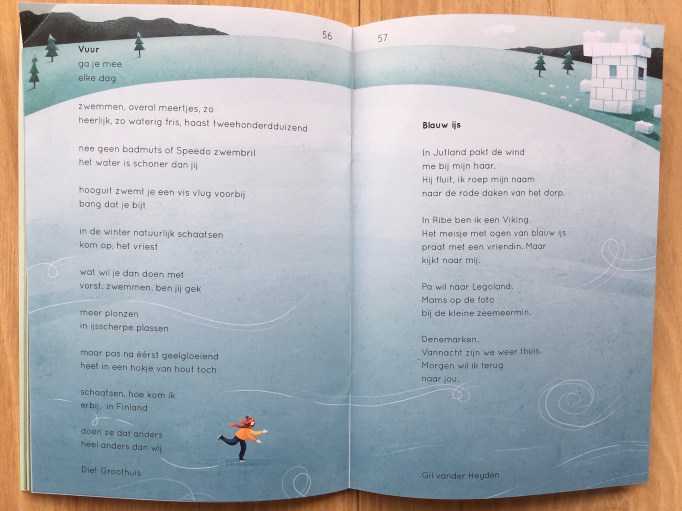 Het is al heerlijk om erin te bladeren en naar de tekeningen te kijken. Voor elk nummer wordt een andere illustrator gevraagd en dat levert prachtige plaatjes op. De gedichten zijn van diverse schrijvers. Dit is dus ook een leuke manier om nieuwe dichters te ontdekken. Sommigen zijn heel bekend, zoals Joke van Leeuwen, anderen hebben nog geen eigen bundel.
