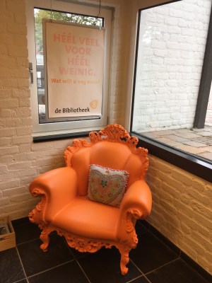 Terwijl we rondkijken, krijgt een mevrouw uitleg over het gebruik van haar e-reader door een bibliotheekmedewerker. Wat een fijne sfeer in deze bieb!