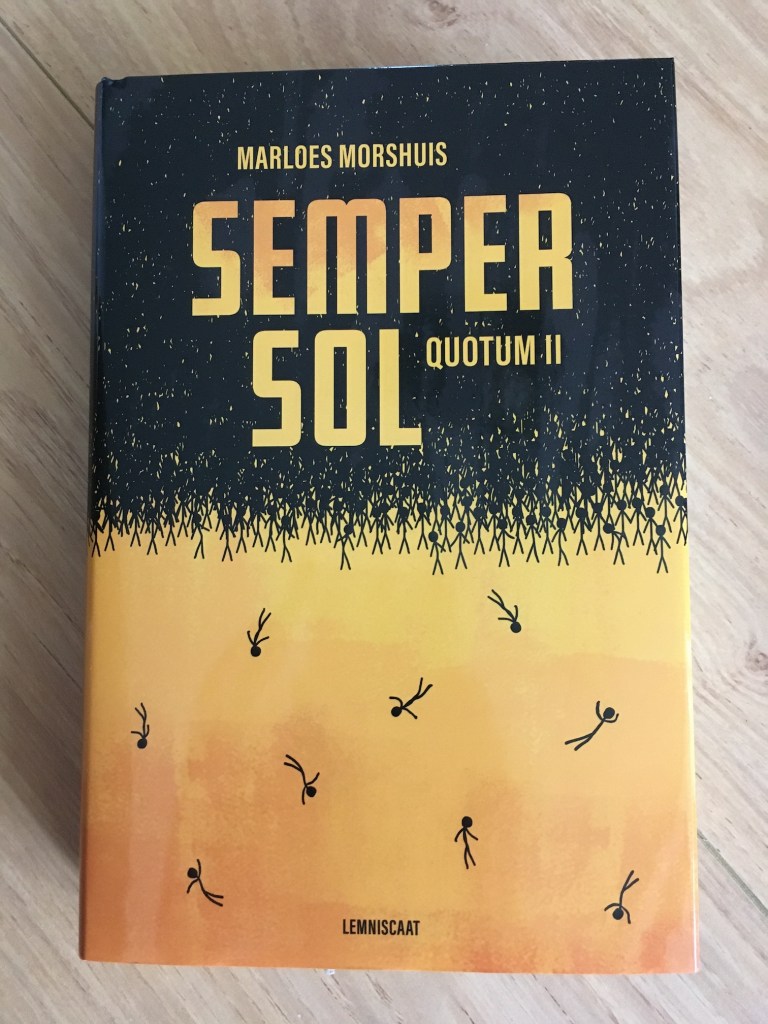 Een paar maanden geleden las ik Quotum: Project Z, een dystopie waarin een paar tieners de hoofdrol spelen. Marloes Morshuis had al aangekondigd dat het een tweeluik zou worden en nu ligt het vervolg in de boekwinkels, genaamd Semper Sol. Het begint meteen met actie, maar in een paar terugblikken word je als lezer wel herinnerd aan wat er in het vorige boek ook alweer was gebeurd. Ik ben blij dat ik het nog niet zo lang heb gelezen, want het is een vrij ingewikkeld verhaal.