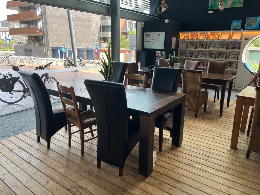 De inrichting is ook in strandsferen. Er is een gezellige hoek met kranten en tijdschriften. (Klik op de foto’s om ze groter te zien.)