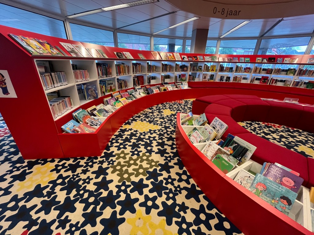 De kinderafdeling is kleurig, met grappige vloerbedekking.