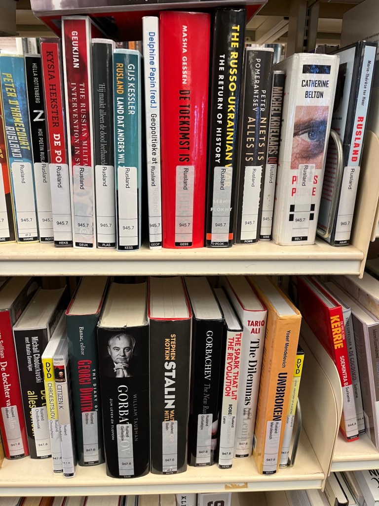 Bij de non-fictie valt het me op dat er ook veel Engelstalige boeken zijn, zoals hier bij de boeken over Rusland en over religie.