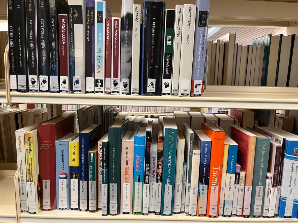 Ook op de volwassenenafdeling zijn boeken in en over allerlei talen: Beppe Fenoglio en Elena Ferrante in het Italiaans, maar ook Spaans, Surinaams, Swahili en Esperanto kwam ik tegen.